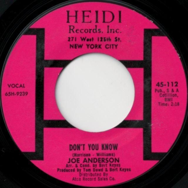 Comment:アーティストの詳細は不明。ATLANTIC 傘下 HEIDI 発、東海岸の名プロデューサー Bert Keyes が手掛けたスタイリッシュなミディアム・ノーザン〜美メロ好曲!! 裏面はスマートなノーザン・ストンパー。※B面の中盤にキズがあるので大特価です。